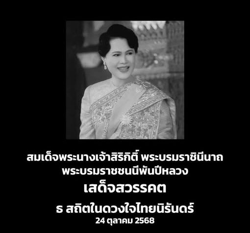| สมเด็จพระนางเจ้าสิริกิติ์พระบรมราชินีนาถ พระบรมราชชนนีพันปีหลวง เสด็จสวรรคต 24 ตุลาคม 2568 |