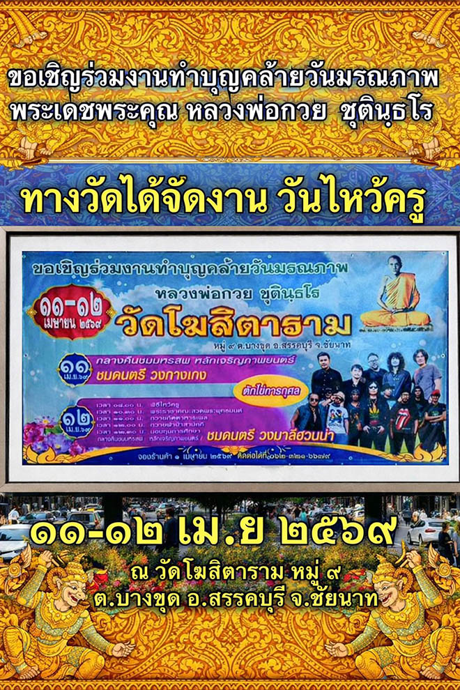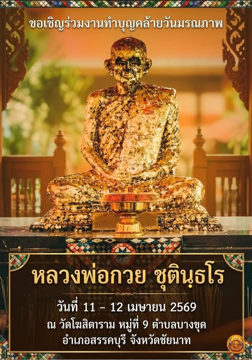 | ระหว่างวันที่ 11- 12 เมษายน 2569 ณ วัดโฆสิตาราม บ้านแค สรรคบุรี จ. ชัยนาท |
