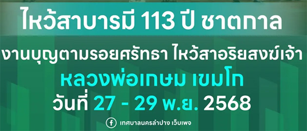 ระหว่างวันที่ 27 - 29 พฤศจิกายน 2568 ณ สถานปฏิบัติธรรมหลวงพ่อเกษม เขมโก