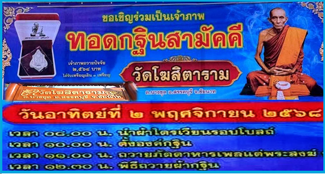| งานบุญกฐินประจำปี 2568 วัดโฆสิตาราม (หลวงพ่อกวย ชุตินธโร ) จ. ชัยนาท วันอาทิตย์ 2 พฤศจิกายน พ.ศ 2568 |